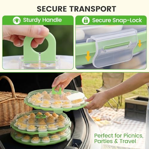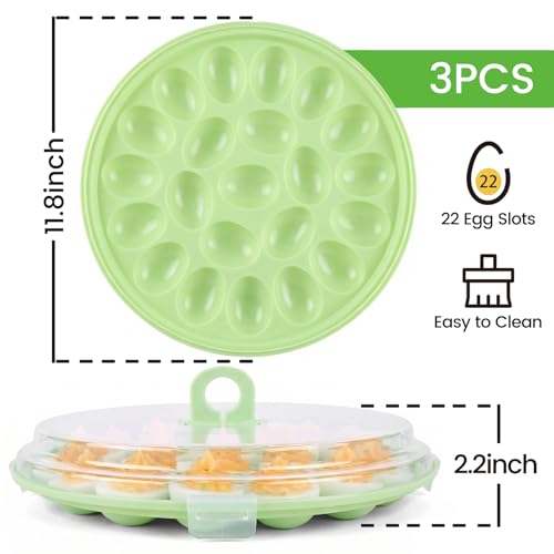 HANSGO Deviled Egg Containers with Lid, 3PCS Deviled Egg Platter Carrier Holder Trays with 66 Slots for Party and Home Kitchen, Green