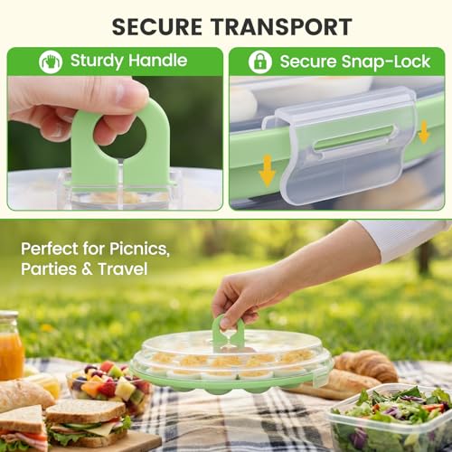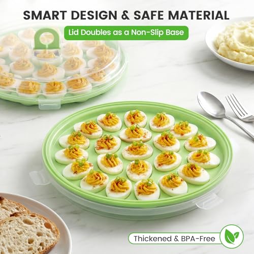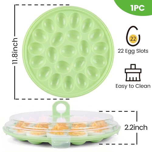 HANSGO Deviled Egg Containers with Lid, Deviled Egg Platter Carrier Holder Trays with 22 Slots for Holiday Party and Home Kitchen, Green