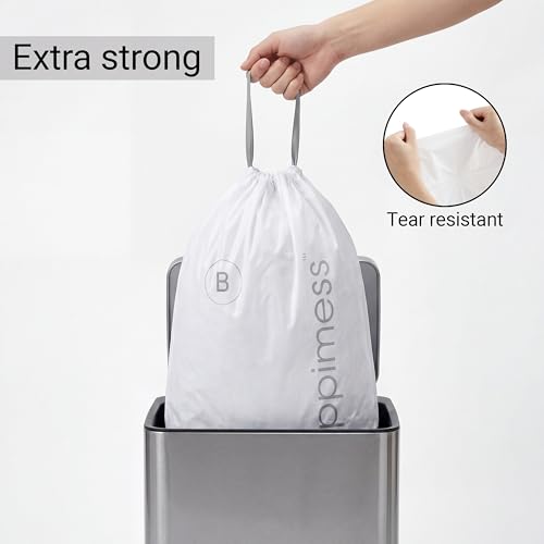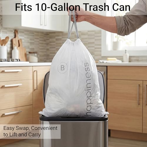 happimess 5.3 Gallon (20L) Drawstring Trash Bags, Unscented, White, Heavy Duty LDPE Liners for Kitchen and Household, Custom Fit 60 Count (3 Packs of 20 Liners) HPM3000B-WHITE