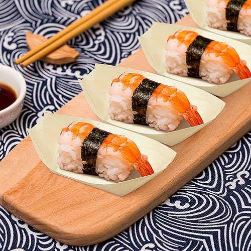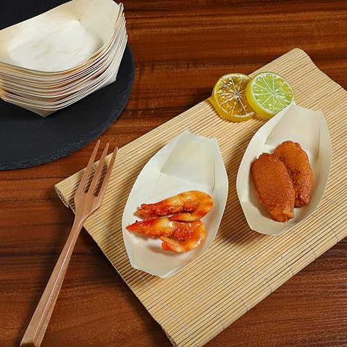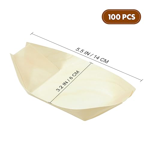 Hemoton Bamboo Wooden Boat Disposable Wood Boat Plates Dishes Sushi Boat Sushi Serving Tray Bamboo Leaf Boat Food Container Wood Bowl for Catering and Home Use 100pcs