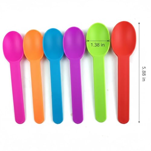 Heyiwell 50 Pieces Premium Plastic Wide Handle Spoons,Ice Cream Spoons Dessert Spoons 5.9" long,Random 5 Colors