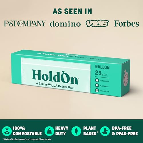 HoldOn HoldOn Zipseal Gallon Bags - Compostable, PFOA-Free, BPA-Free, Food-Safe Zip Seal Food Storage Bags/Freezer-Safe Gallon Bags With Secure Seal for Home & Travel (2-pack, 50 bags total)