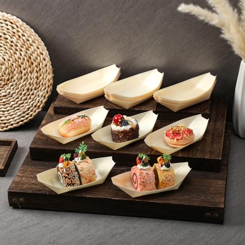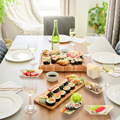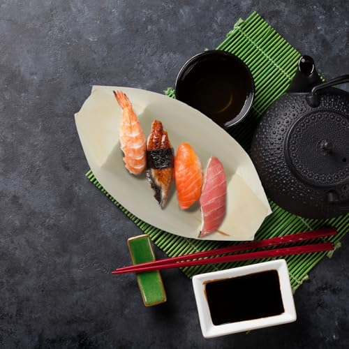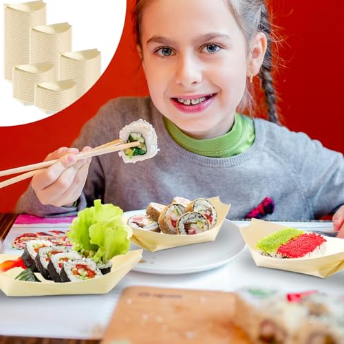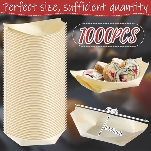 Hoolerry 1000 Pcs Disposable Wood Boat Plates Dishes 4 Inches Bamboo Plates Sushi Boat Disposable Bamboo Leaf Dish Serving Tray Food Container Wood Bowl For Catering Home