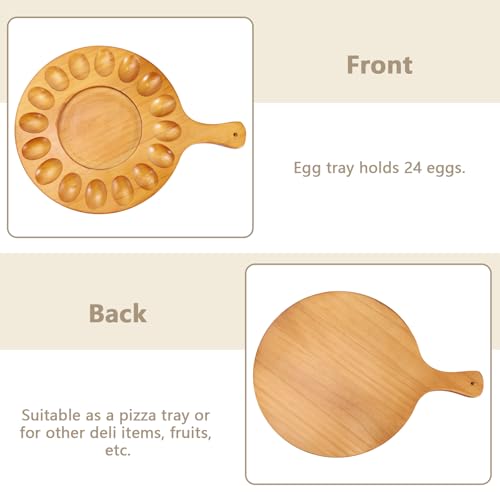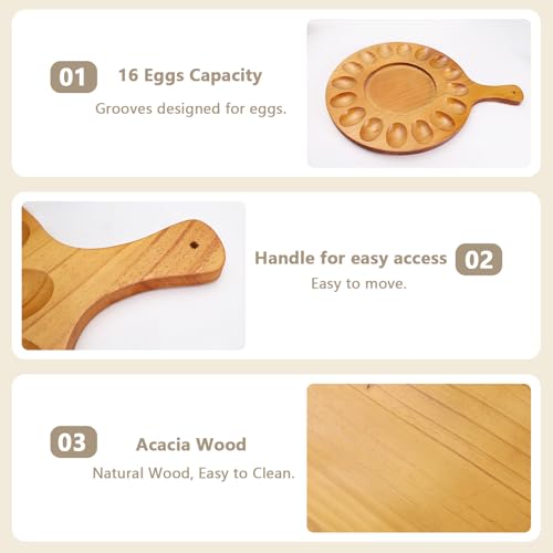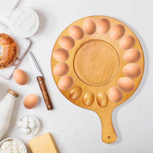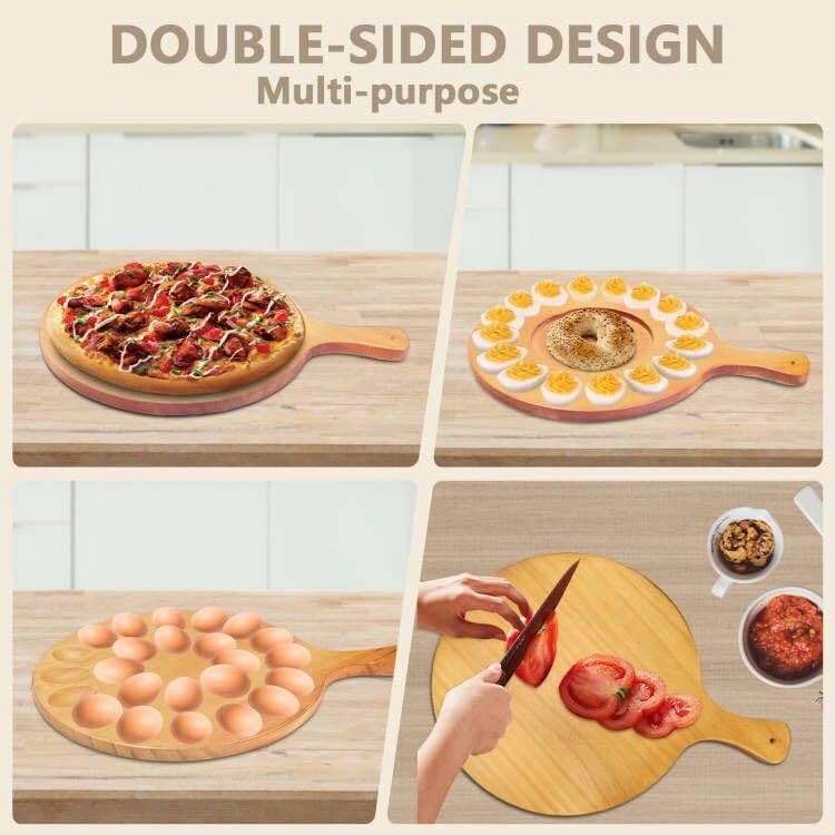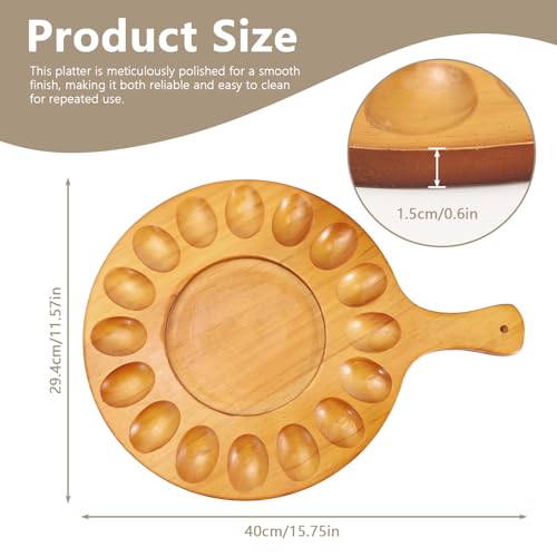 Huakaile 2 Sides Wooden Deviled Egg Platter & Charcuterie Board, Round Deviled Egg Tray, Cutting Cheese Board Deviled Egg Serving Platter Holder Container for Countertop Party (16 Slots)
