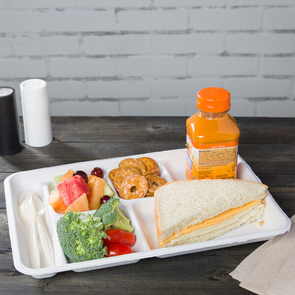 Huhtamaki Chinet 22021 12 1/2" x 8 1/2" White Molded Fiber / Pulp 6 Compartment Cafeteria Tray - 500/Case