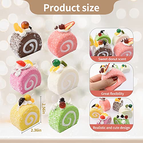 HUIANER Fake Cake Dessert 6PCS Artificial Simulation Cake Food Model Faux Swiss Rolls for Home Kitchen Decoration Display Photography Props