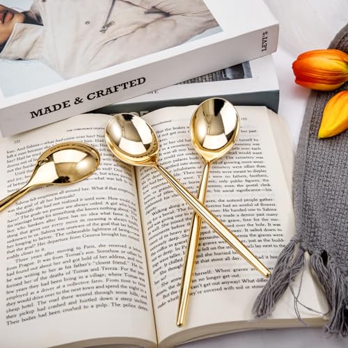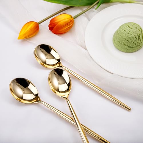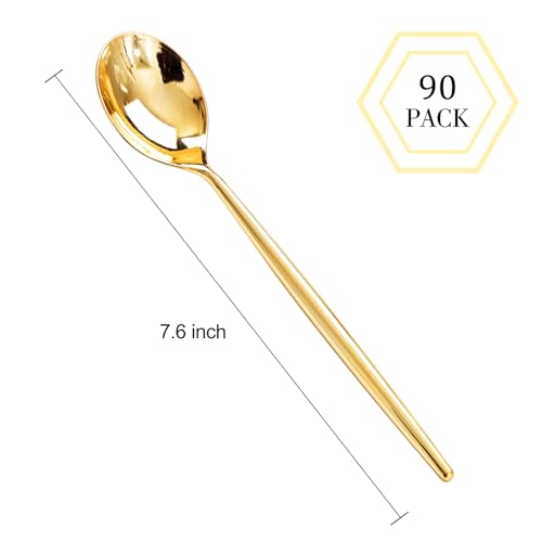 I00000 90 Pcs Gold Plastic Spoons,Disposable Silverware, Gold Plastic Cutlery, Heavy Duty Disposable Spoons Perfect for Parties, Wedding & Dinners