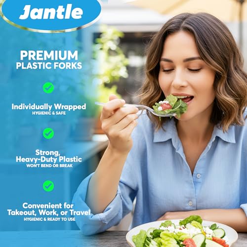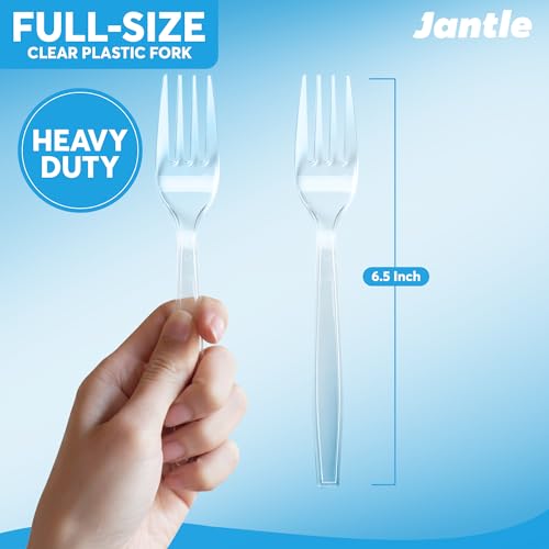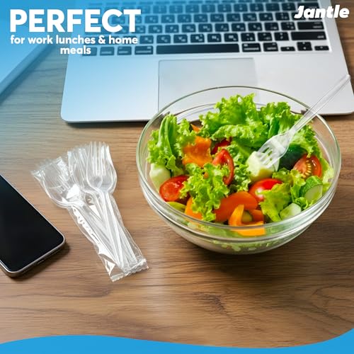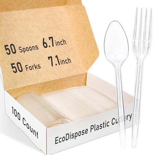 Individually Wrapped Heavy Duty Plastic Forks with Dispenser Box, Clear Disposable Spoons 100 Pack - Disposable Utensils for Home, Office, Restaurant, Catering, To-Go Meals - 100 Count (Clear)