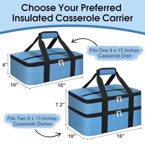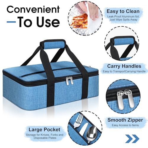 Insulated Casserole Carrier, Portable Casserole Carrier for Hot or Cold Food Lunch Tote Warmer or Cooler Bag, Lasagna Lunch Bag for Potluck Parties- Fits 9" x 13" Baking Dish-Azure