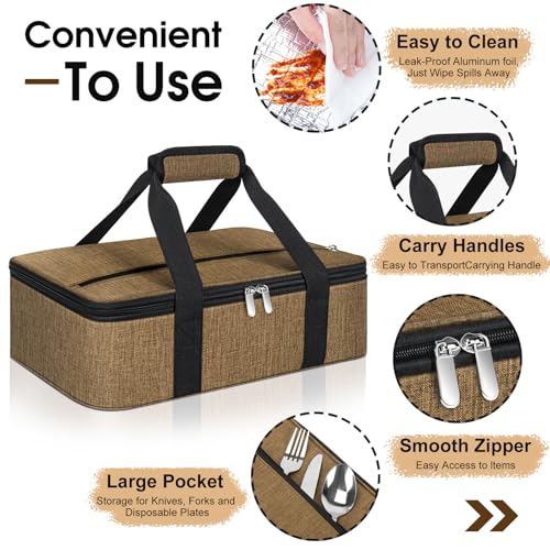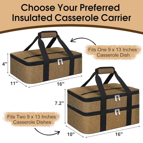 Insulated Casserole Carrier, Portable Casserole Carrier for Hot or Cold Food Lunch Tote Warmer or Cooler Bag, Lasagna Lunch Bag for Potluck Parties- Fits 9" x 13" Baking Dish-Coffee