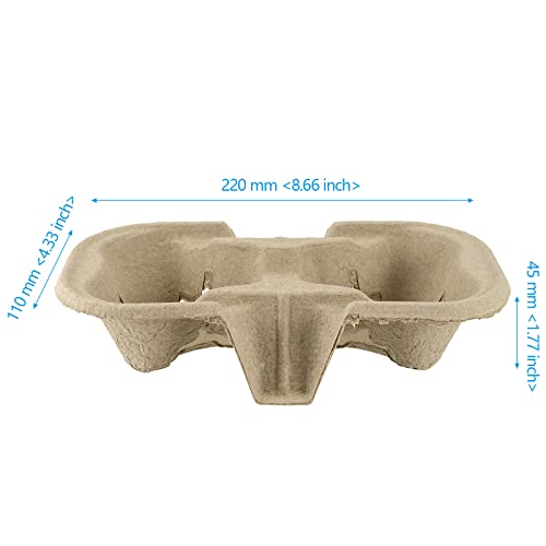 JEUIHAU 100 Pack Pulp Fiber Drink Carrier Tray for 8-24 oz Cups, Biodegradable Carrier for Hot or Cold Drinks, Ideal To Go Drink Holder for Car Food Delivery