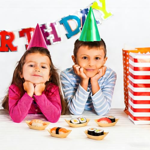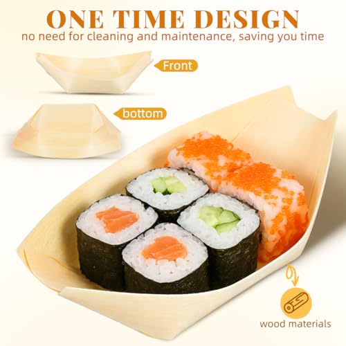 jojofuny 150pcs Disposable Bamboo Sushi Boat Plates for Appetizer - 3.3" Wooden Charcuterie Boat Leaf Small Sushi Serving Tray - Japanese Sashimi Plate Platter Snack Dish for Home Party Use