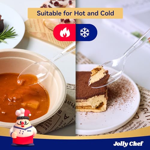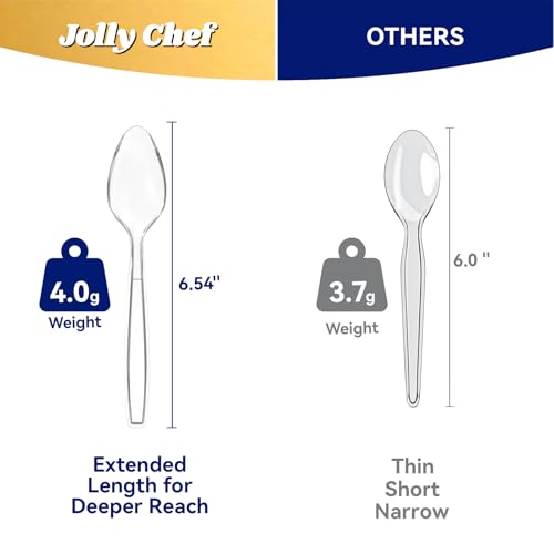 JOLLY CHEF 300 Count Clear Plastic Teaspoons Heavy Duty, 6.54" Heat Resistant Solid and Durable Plastic Teaspoons Disposable, Disposable Bulk Cutlery Suitable for Parties Supply Events Everyday Use
