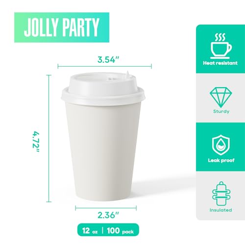 ![JOLLY PARTY [100 Pack] 12 oz Paper Coffee Cups, Disposable Paper Coffee Cup with Lids, Hot/Cold Beverage Drinking Cup for Water, Juice or Tea, Suitable for Home, Shops and Cafes](https://m.media-amazon.com/images/I/313R2U9hKUL.jpg)