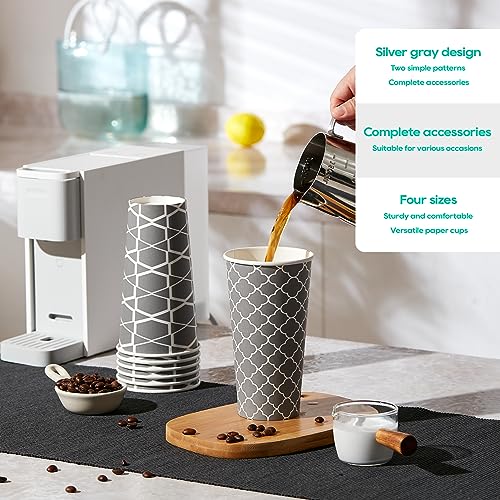 Brand Name: JOLLY PARTY | Capacity: 1.3 Pounds | Color: Silver Grey | Finish Types: [POSSIBLE] Glossy | Included Components: Lid | Item Dimensions W x H: 3.54"W x 6.3"H | Item Weight: 0.75 Pounds | Material Features: Disposable, Insulated | Material Type: Paper | Number of Items: 100 | Other Special Features of the Product: Disposable | Pattern: Geometry, Mesh | Product Care Instructions: Hand Wash Only | Product Style: 20oz Cups | Recommended Uses For Product: Home, Travel | Reusability: Disposable | Shape: Round | Size: 100 Count (Pack of 1) | Specific Uses For Product: Hot Drinks | Unit Count: 100.0 Count