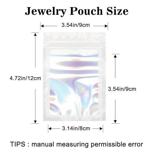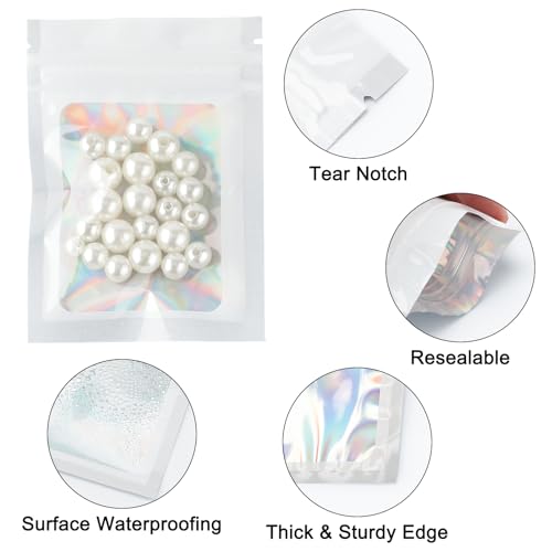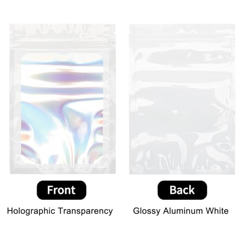 joycraft 100 Pcs Mylar Bags, Holographic Packaging Bags, Resealable Smell Proof Bags, Jewelry Pouch Bag for Small Business, Clear Foil Pouch Bag for Candy, Data Cable, Lipgloss(White, 3.5x4.7 In)