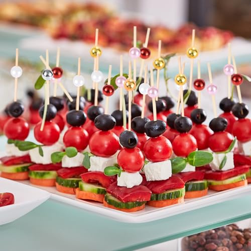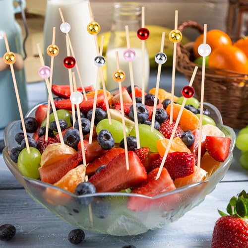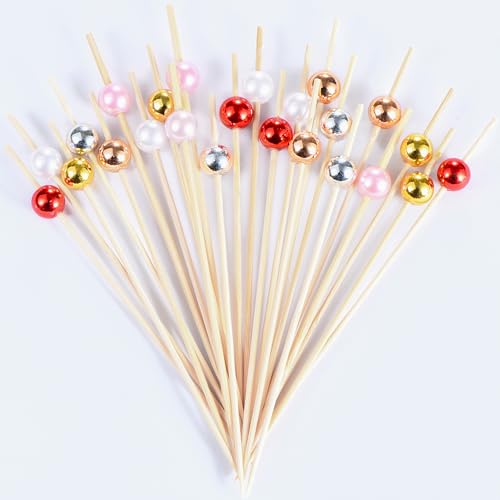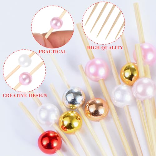 JtmyAota 100 Pcs Pearl Toothpicks for Appetizers, 4.7 Inch Pearl Cocktail Picks for Party Decoration, Appetizer Skewers for Charcuterie Sandwich Burgers Fruit Drinks Party (Pink)