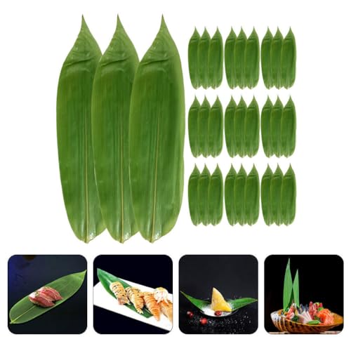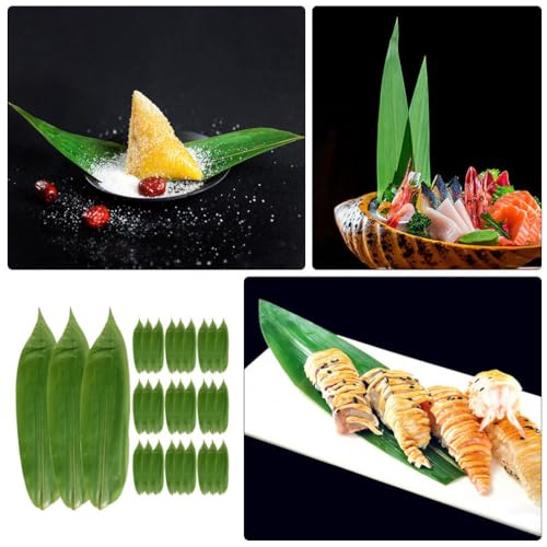 Kichvoe 100pcs Bamboo Leaves for Sushi Decoration Realistic Leaf Shape for Sashimi and Cold Dishes and for Japanese Cuisine