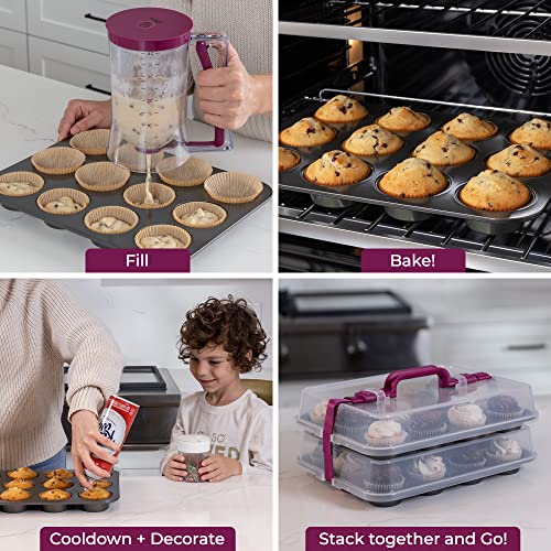 KPKitchen Cupcake Carrier for 24 Cupcakes - Innovative Cupcake Holder includes 2 Cupcake Pans with Lid and Handle - Cupcake Travel Container Carries 12 or 24 Standard-Size Cupcakes for Storage Safely