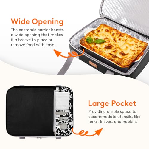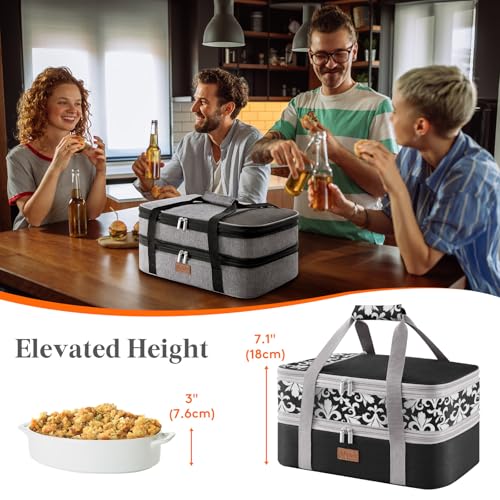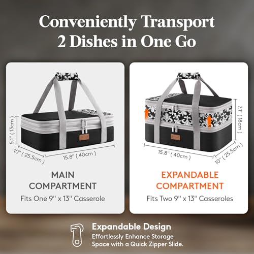 Lifewit Insulated Double Decker Casserole Carrier, Expandable Lasagna Lugger Tote Bag for Hot or Cold Food, Fits 9" x 13" Baking Dish for Potluck Parties, Picnic and Cookouts, Black-Flowers