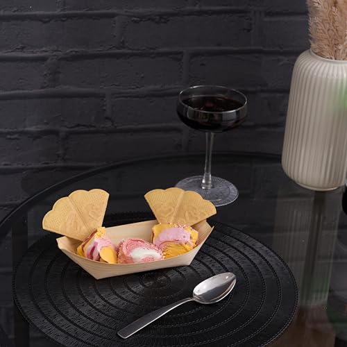 Brand Name: MATANA | Color: Natural | Finish Types: Polished | Is the item dishwasher safe?: No | Is the item microwaveable?: No | Item Dimensions L x W x Thickness: 22"L x 11"W x 4.5"Th | Item Type Name: Snack Bowl | Item Weight: 7 Grams | Manufacturer: MATANA | Manufacturer Part Number: S0719 | Material Features: Biodegradable | Material Type: Bamboo | Model Number: S0719 | Number of Pieces: 100 | Occasion Type: Birthday, Buffet, Party, Picnic, Wedding | Other Special Features of the Product: Biodegradable, Compostable, Reyclable | Pattern: Solid | Product Care Instructions: Dispose in a composting facility if available, or regular household waste. | Recommended Uses For Product: Appetizer, Hot Dog, Sandwich, Snack, Sushi | Reusability: Disposable | Seasons: All Seasons | Shape: Oval | Size: 100 pack | Style Name: Rustic | Unit Count: 100.0 Count