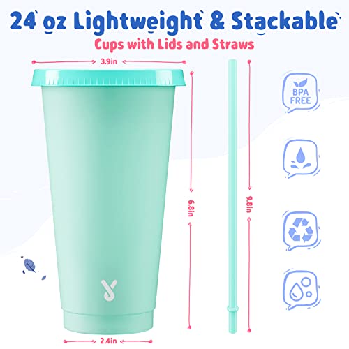Meoky Plastic Cute Cold Cups with Lids and Straws Bulk for Iced Coffee - 6 Pack 24 oz Color Changing Reusable for Adults Kid Women Party