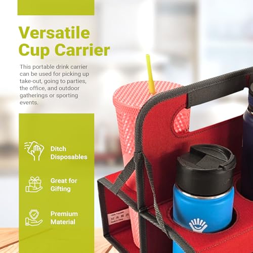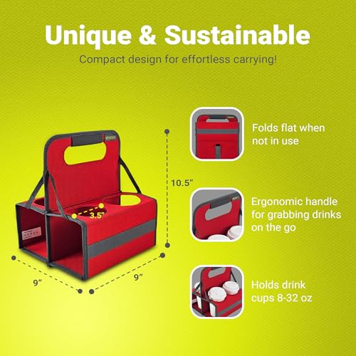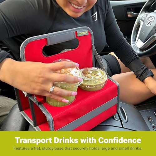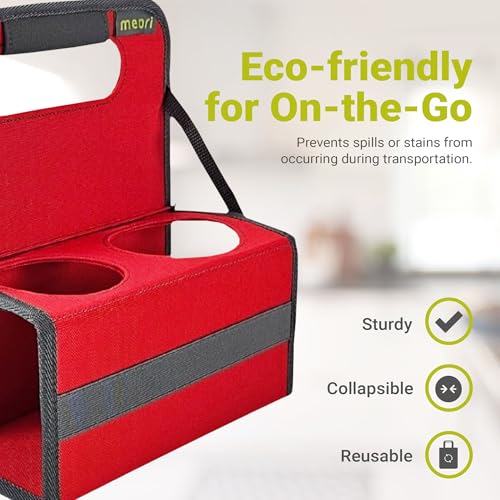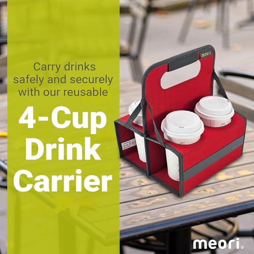 meori Reusable Drink Carrier 4 Cup, Take Out Cup Carrier, Collapsible, Coffee Carrier with Handle Wine, Cocktails, Portable Drink Caddy