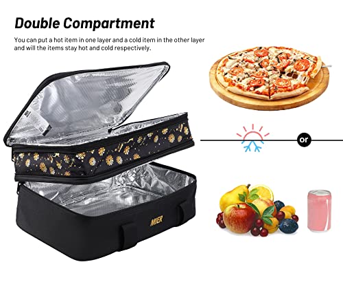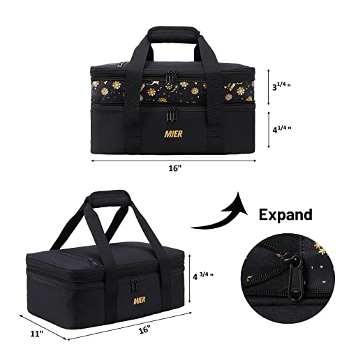 MIER Insulated Double Casserole Carrier Bag for Lasagna Lugger, Potluck Parties, Picnic, Beach, Fits 9 x 13 Inches Baking Dish, Casserole Dish, Expandable, Black