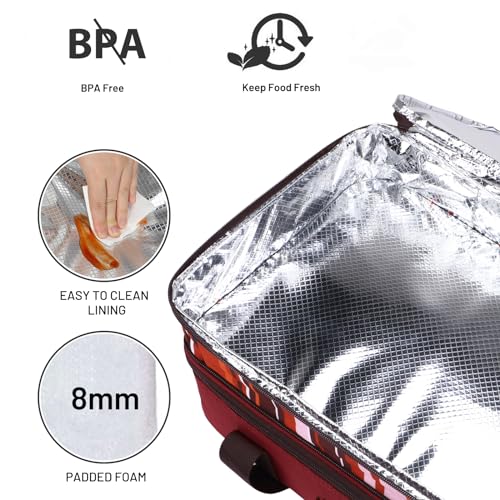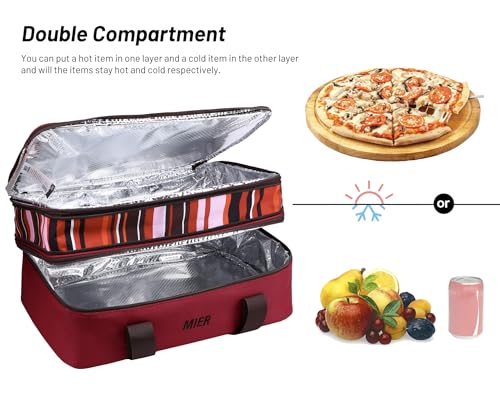 MIER Insulated Double Casserole Carrier Thermal Lunch Tote for Potluck Parties, Picnic, Beach, Fits 9 x 13 Inches Casserole Dish, Expandable by Mid Zipper, Burgundy