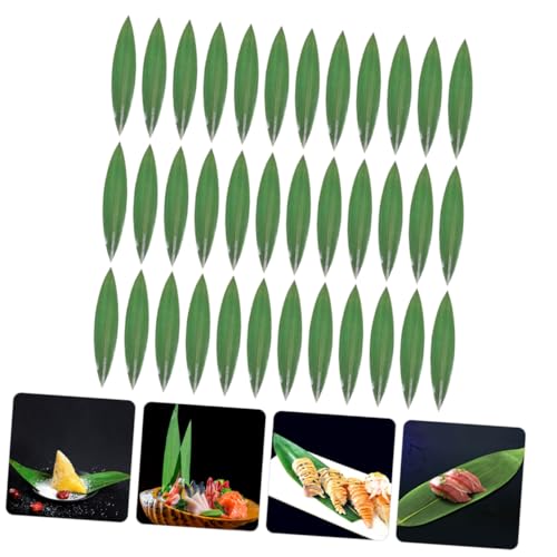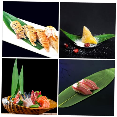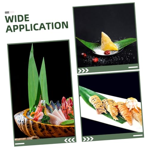 Mikinona 100pcs Bamboo Leaves for Sushi Plate Decoration Natural Dish Adornments for Sashimi and Cold Dishes Elegant Bamboo Leaf Mats for Japanese Cuisine Serving