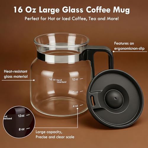 Mini Coffee Pot Mug with Lid,16Oz Glass Coffee Pot Coffee Mugs,Spill-Proof & Heatproof Coffee Pot Cup Gifts for Coffee Lovers (1Pcs)