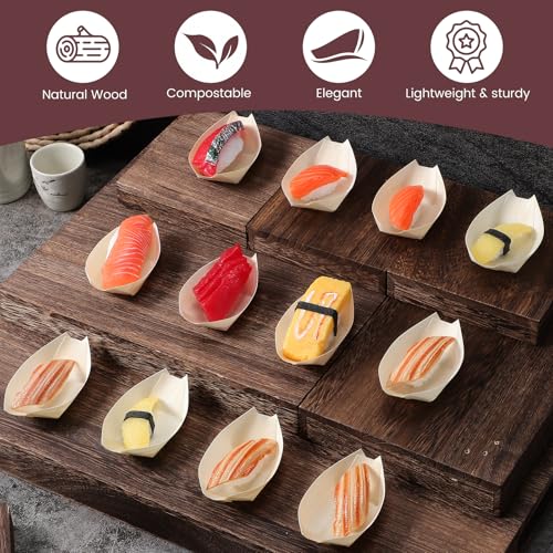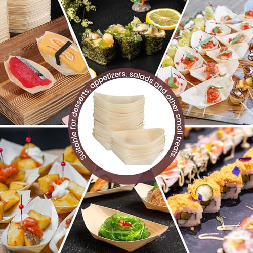 Mini Sushi Boat Serving Tray 50Pcs Disposable Wooden Snack Bowls 3.35X2.36In Food Containers for Sushi Appetizers Dessert Party Tableware
