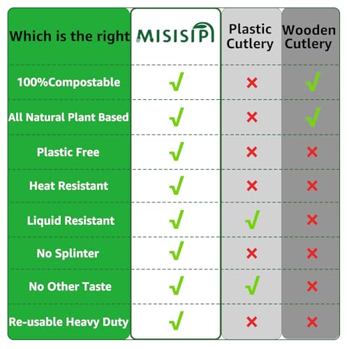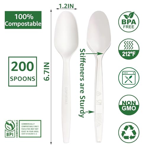 MISISIPI 200Count 100% Compostable Spoons Biodegradable Spoon HeavyDuty No Plastic Spoons Eco-friendly HeavyWeight Disposable Spoon Tableware Set for Lounge,Party,BBQ,Cafeteria,Wedding,Picnic