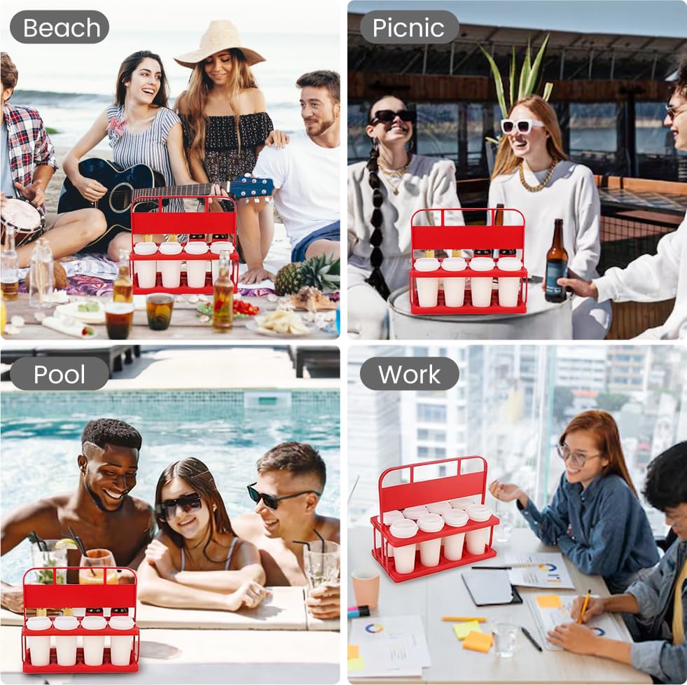 musbus Reusable Drink Carrier with Handle for Delivery Drivers, Portable Cup/Coffee Holder Accessories for Delivery, Foldable Drinks Caddy with Tray, Car Durable Plastic Festive Bottle, Vacation