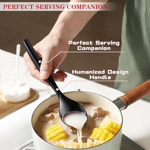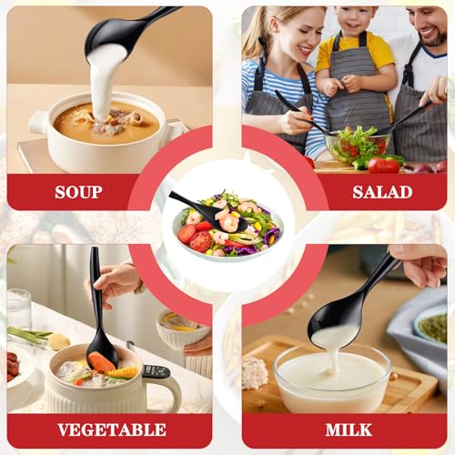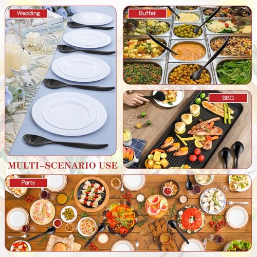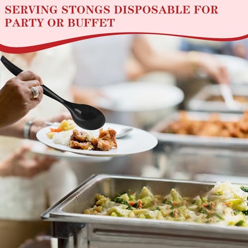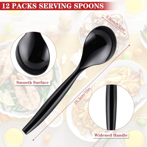 Mwellewm 10" Serving Spoons Plastic Serving Utensils 12 Packs Disposable Spoons for Buffet Large Heavy Duty Black Plastic Soup Spoons Catering Supplies for Parties Weddings Gatherings Holiday