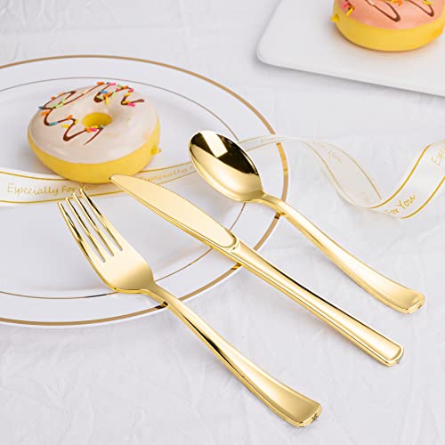 N9R 500PCS Gold Plastic Silverware - Gold Plastic Cutlery Set Disposable Flatware Dinnerware -200 Forks, 150 Spoons, 150 Knives for Party, Birthday, Wedding Utensils