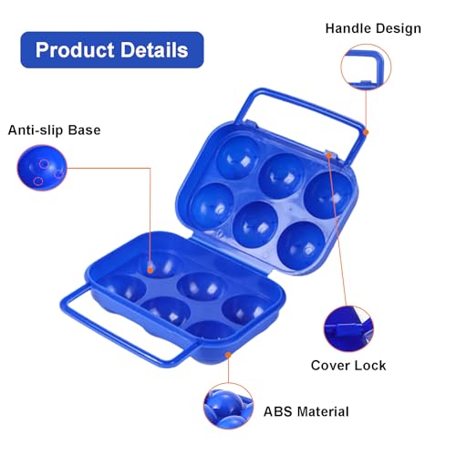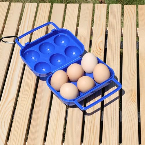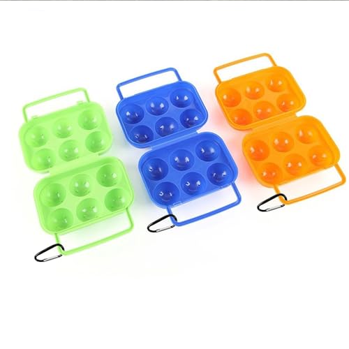 Pack of 3 Plastic Portable Camping Egg Carrier With D Buckle - 6 Eggs Capacity, Kitchen Storage Box, Tray Carriage Dispenser for Refrigerator