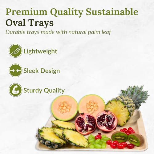 Palm Leaf Trays 14" x 10" – 10 Pack Bamboo Serving Trays, Compostable & Heavy Duty Disposable Charcuterie Board for Weddings Party, Any Catering, Camping & Events