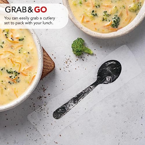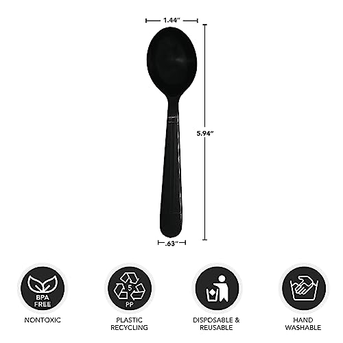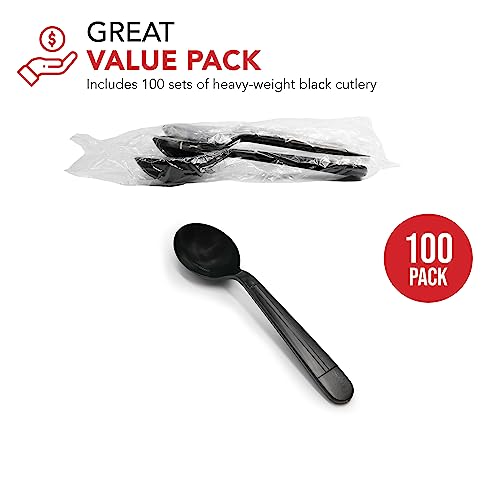 Party Essentials Individually Wrapped Black Plastic Utensil Sets/Heavy Duty Flatware Packs, Soup Spoon, 100 Sets