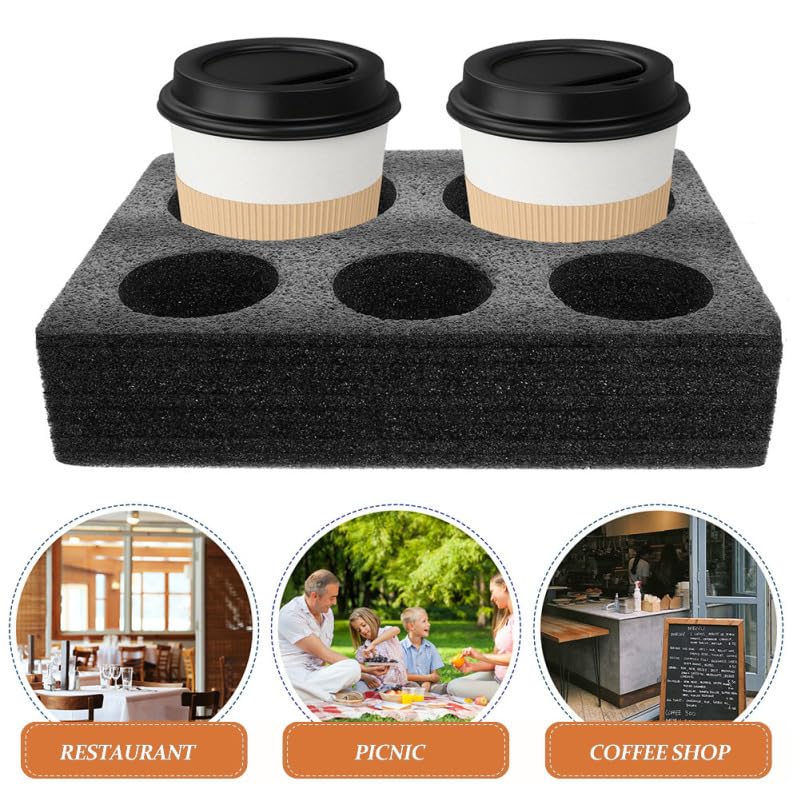 PartyKindom 3 & 5-Cup Foam Drink Carrier Tray, Spill-Proof EPE Pearl Cotton Takeout Cup Holder, Shock-Absorbing Beverage Packing Combination Set for Coffee Milk Tea Shops