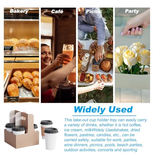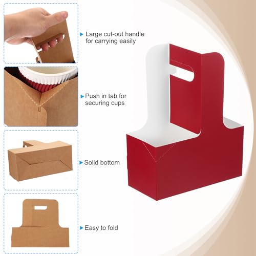 PATIKIL 2 Cup Drink Carrier with Handle, 10 Pack Kraft Paperboard to Go Coffee Cup Holder, Portable Disposable Handled Drink Carriers for Take Out Restaurant Food Service, Multicolor