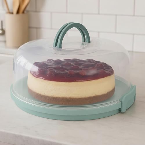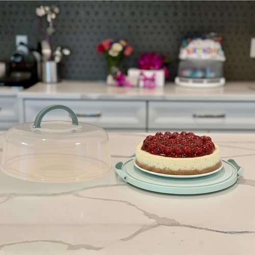 Pie Carrier with Lid and Handle - Fits Pies 10in x 4.5in, Doubles as Divided Serving Tray - Cheesecake Container Dessert Carrier Pie Container With Lid, Cheesecake Containers with Lids - BPA Free