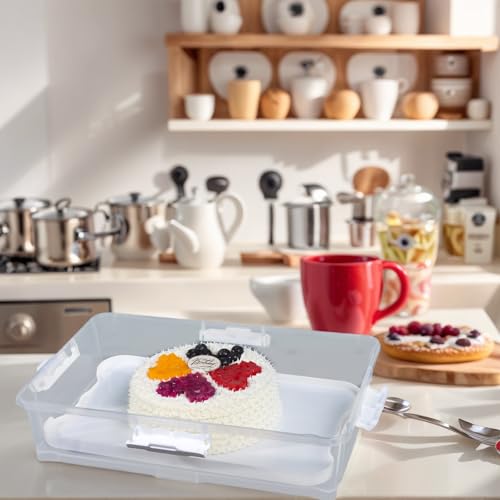 Plastic Cake Carrier and Cupcake Holder,Portable Stackable Cupcake Dessert Storage Container for Full Size 14x9 Cake Box Or Storing 12 Cupcakes Tray