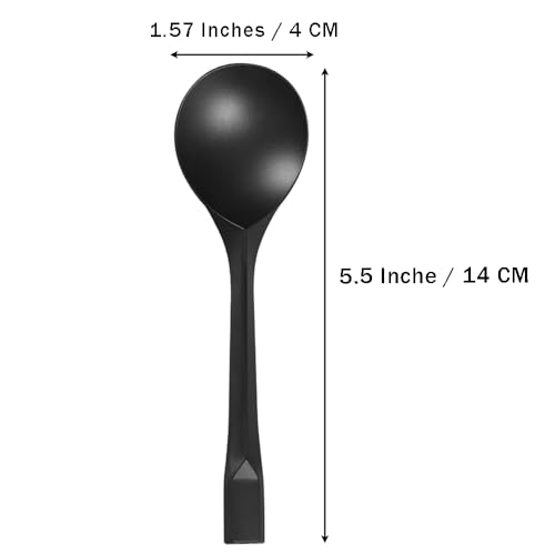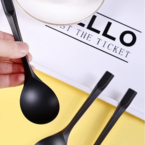 Plastic Dessert Spoons,Disposable Heavy Duty Black Soup Spoons for Party Office Restaurants Events Utensils,5.5 x 1.57 Inch,Black,100 Pieces.