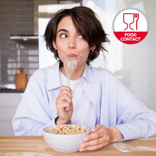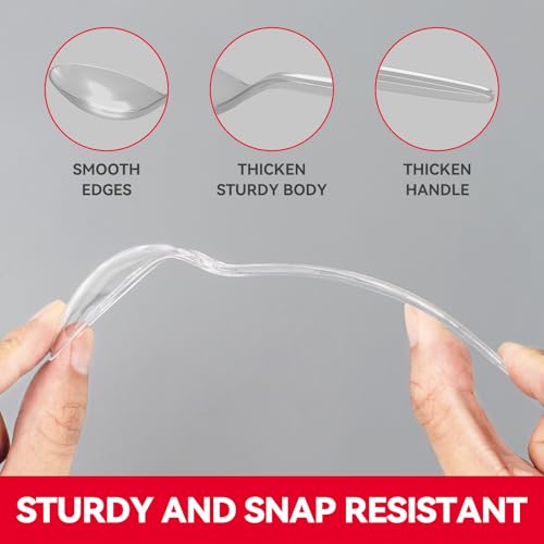 Amazon Basics Disposable Clear Plastic Spoons, Premium Quality, 100 Count, Large Pack