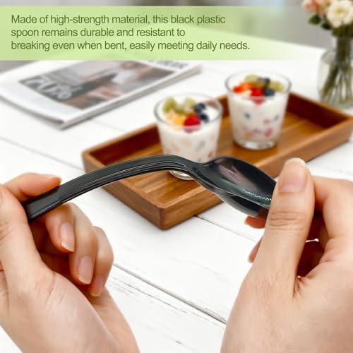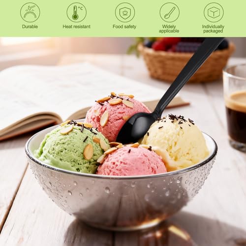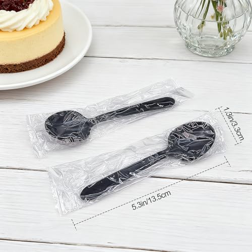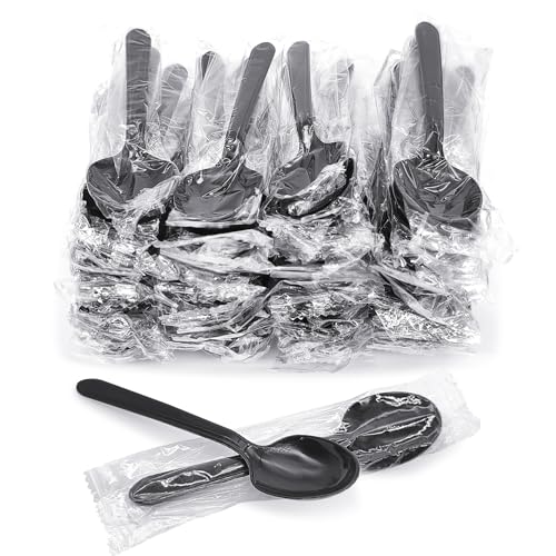 Plastic Spoons Individually Wrapped, Heavy Duty Disposable Spoons Bulk - Ideal for Parties, Restaurants, Travel, Takeout, Desserts (100, Black)
