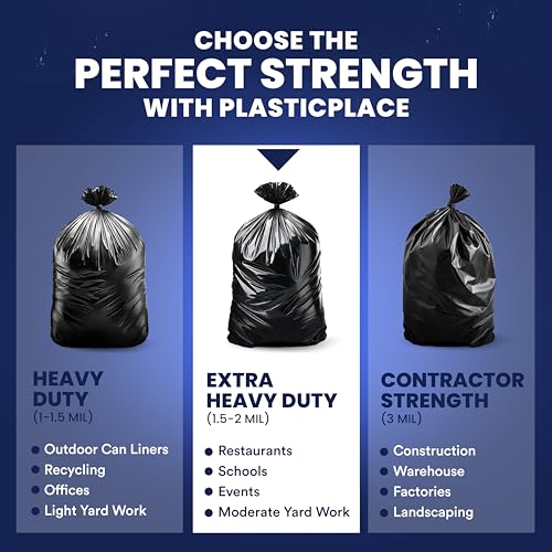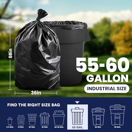 Plasticplace 55-60 Gallon Trash Bags │ 2.0 Mil │ Black Heavy Duty Garbage Can Liners │ 36” x 58” ,50 Count, Black (Pack of 1)
