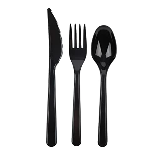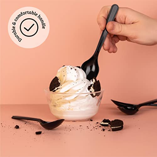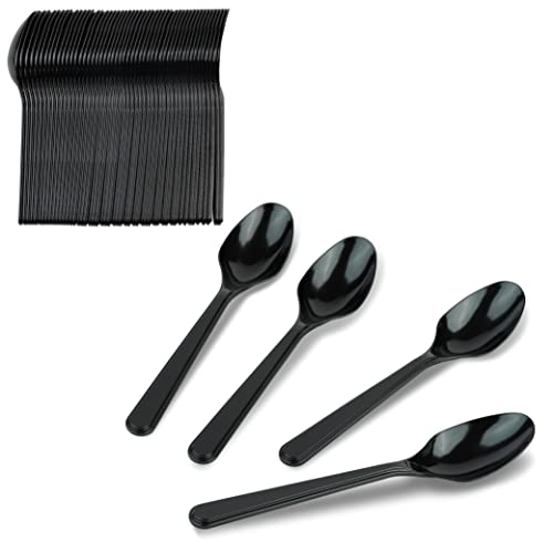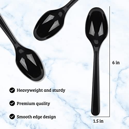 PlasticPro 50 Pack Heavy Weight Plastic Spoons Black Disposable Spoons Plastic Cutlery Set