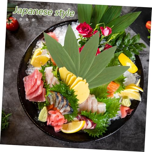PRETYZOOM 100pcs Sushi Bamboo Leaves Ornament Japanese Food Mat Decorative Leaf for Sushi Dish Sashimi Decor Mats