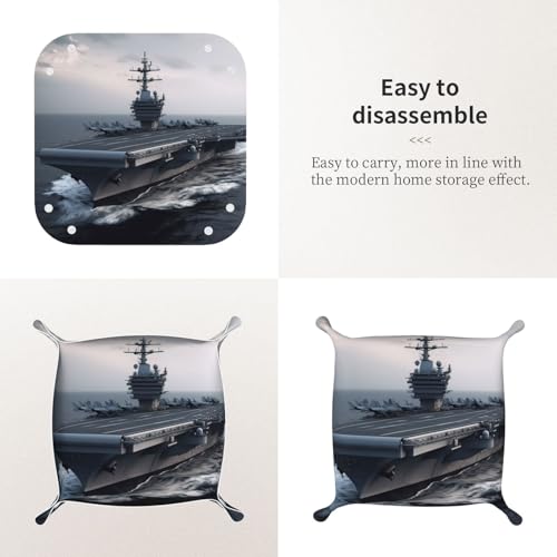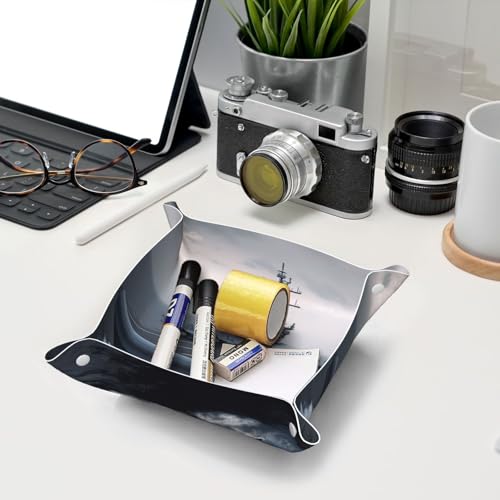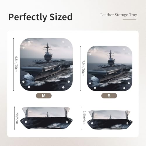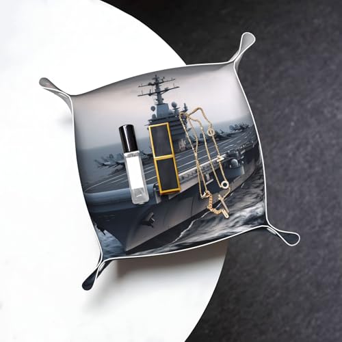 PU Leather Valet Tray,Elegant Desktop Storage Organizer Aircraft Carrier Decorative Jewelry Tray, Portable Catchall Travel Storage Dish Plate for Key, Wallet, Watch, Coin